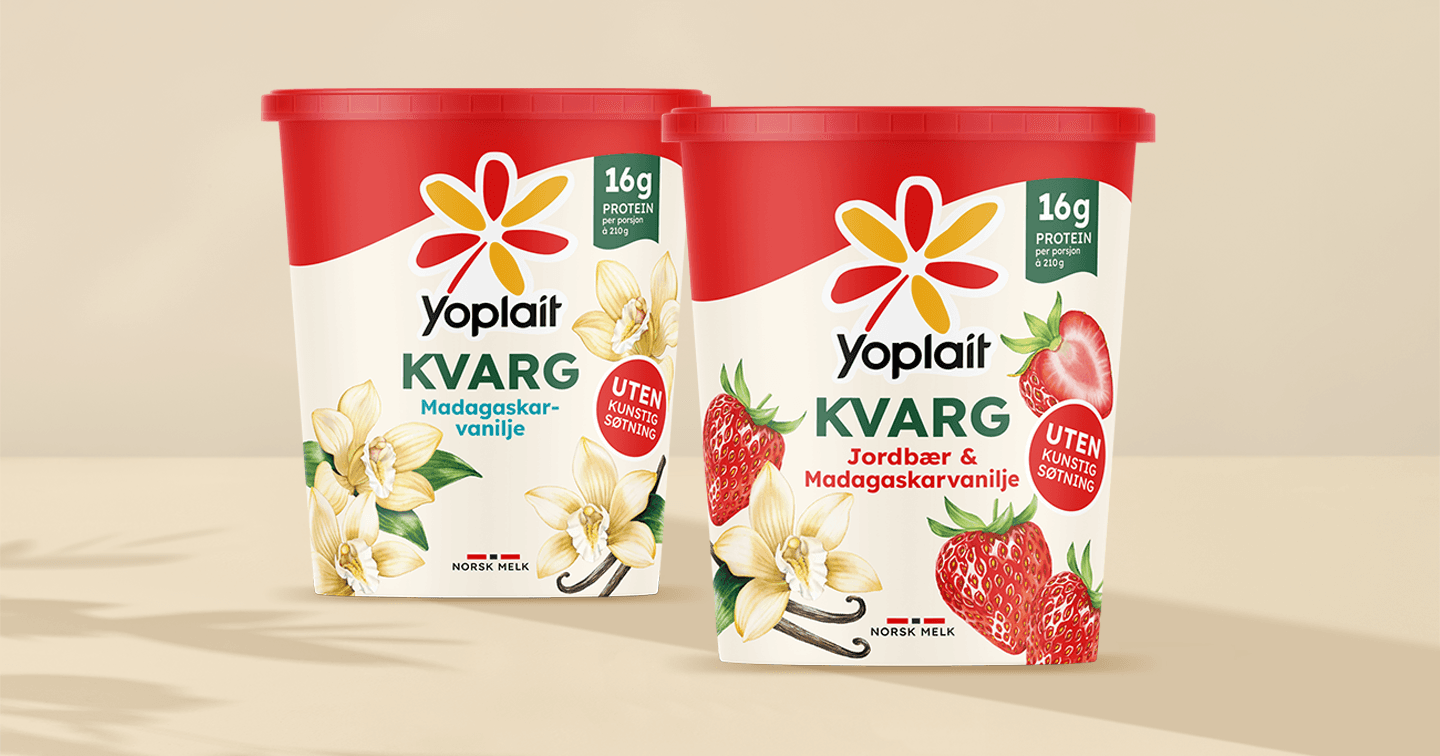 Yoplait KVARG Jordbær & Madagaskar-vanilje er en frisk og balansert kombinasjon av sødmefulle jordbær og aromatisk vanilje. Du finner den i yoghurthyllen hos REMA 1000, Extra, Coop Mega, Obs og Oda.